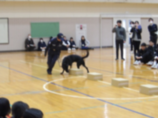 さらに、麻薬探知犬の「モモタロウくん」が登場し、薬物発見の実演を見ることができ、生徒達にとって貴重な体験になりました。